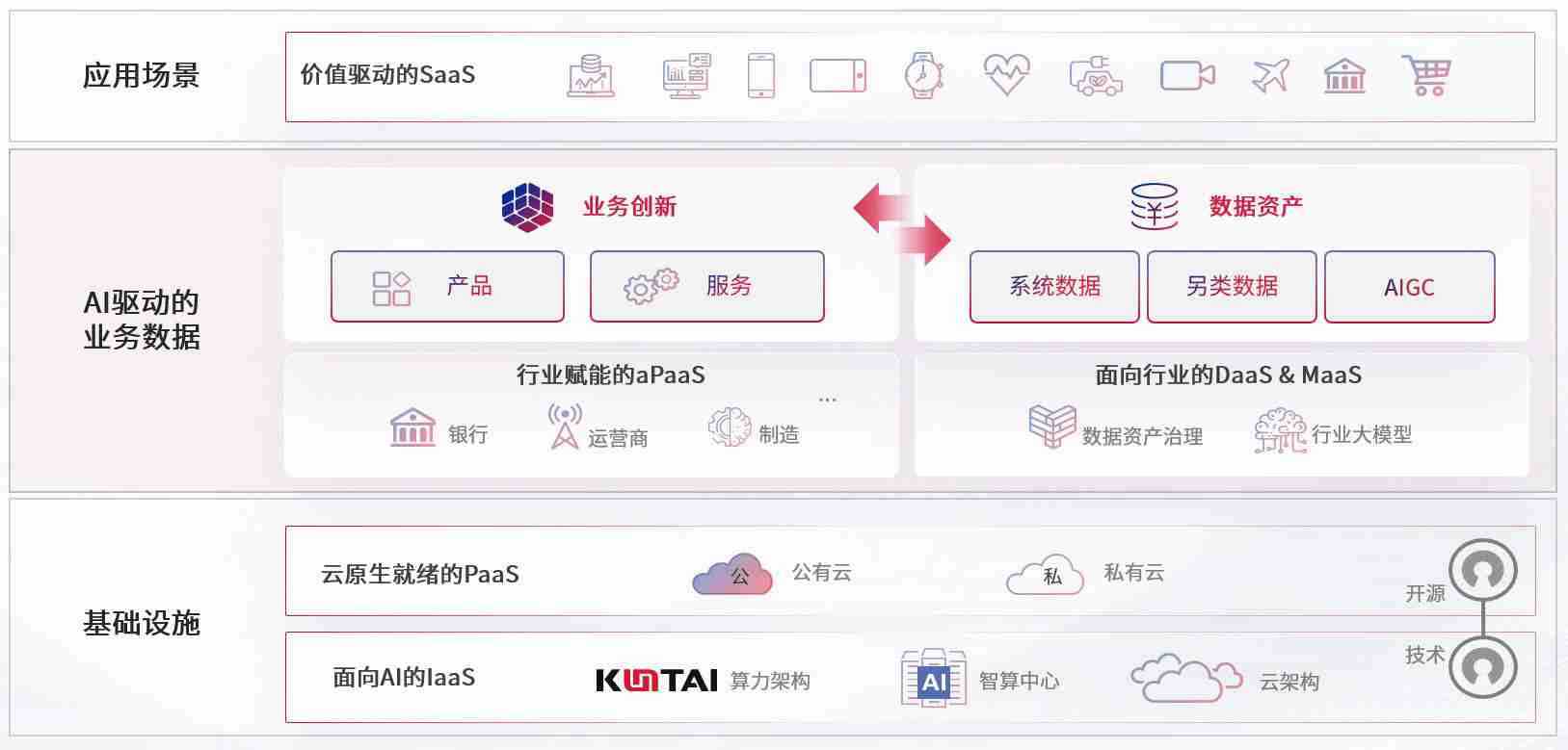 数字时代,,围绕企业数字化转型的关键要素,,,宝博游戏数码开创性的提出数云融合战略和技术体系框架,,,着力在云原生、、、数字原生、、、、AI原生和信创产业上架构产品和服务能力,,为处在不同数字化转型阶段的快消零售、、、、汽车、、、、金融、、医疗、、、政企、、教育、、、运营商等行业客户提供泛在的敏捷IT能力和融合的数据驱动能力,,,,构建跨界融合创新的数字业务场景和新业务模式,,助力企业级客户建立面向未来的核心能力和竞争优势,,全面推动社会的数字化、、、、智能化转型升级。。。。